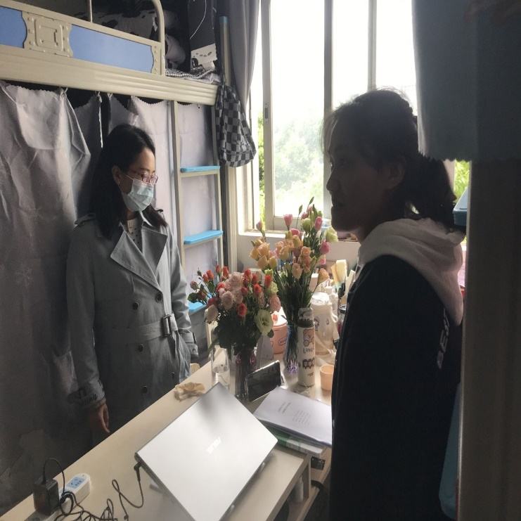 在经开校区,三支部小分队在商务信息学院党总支副书记李忠岘和两位辅导员老师的带领下,一起走访了学生宿舍。假期的经开校园学生不多,留校的同学大部分都会约上朋友昆明一日游,早上出门晚上按时返回学校。走访中发现不少女生宿舍里都插着一束鲜花,用鲜花装点后的宿舍,增添了假日心情的轻松快乐。李忠岘副书记还介绍学院将策划篮球比赛等活动来丰富留校同学的假期生活。