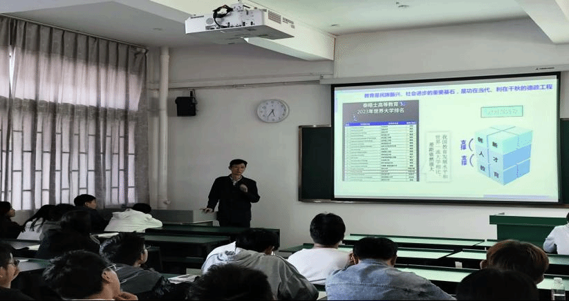 党委副书记李昆峰以“加快建设教育强国、科技强国、人才强国”为题,从着眼长远发展的重大抉择、铸就强国建设的坚实基础、加快强国建设的战略部署、充分发挥高校的重要作用等方面进行了讲解。授课过程中,充分进行案例分析,深入浅出地为同学们进行了阐释。