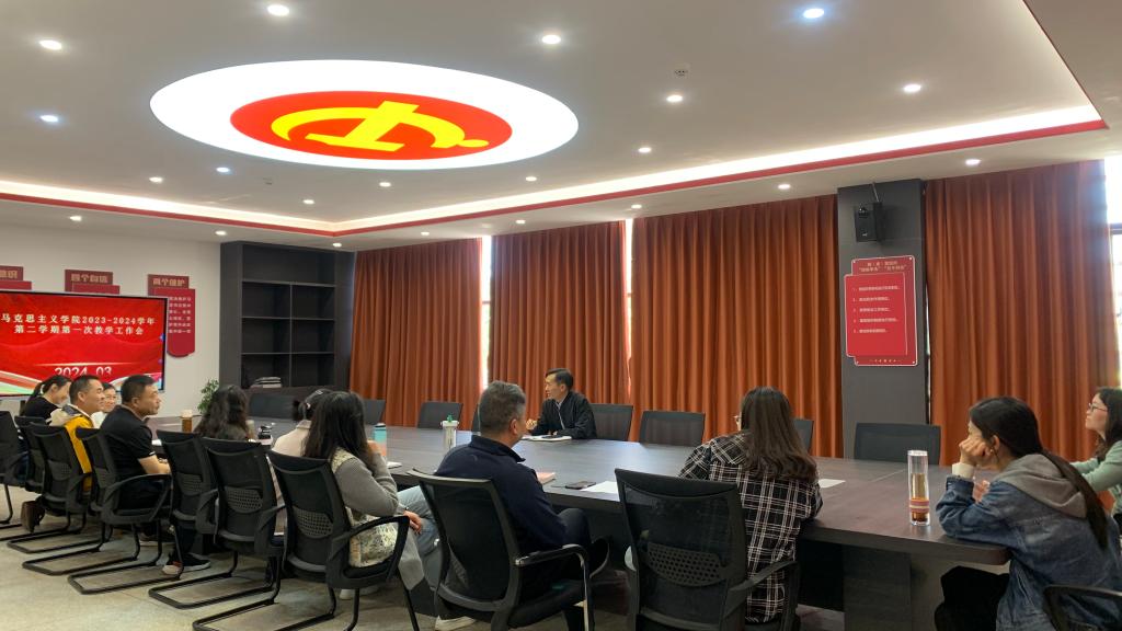 3月27日下午,马克思主义学院2024年春季学期第一次教学督导工作会议在勘物楼B202召开,各教研室主任、学院教学督导及骨干教师参加会议,会议由副院长周先阳主持。