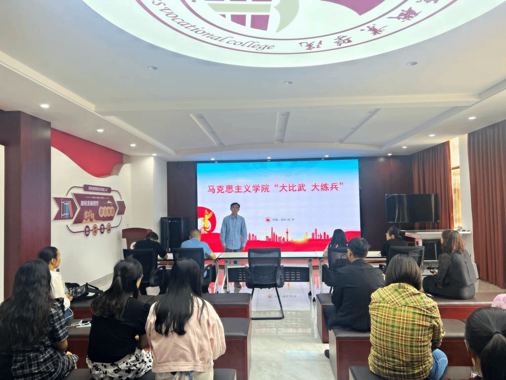 5月29日下午,马克思主义学院在尚能馆举行思政课教学“大比武,大练兵”活动。活动由马克思主义学院副院长周先阳主持,各教研室主任担任评委,每门课程选派任课教师进行专题教学展示。