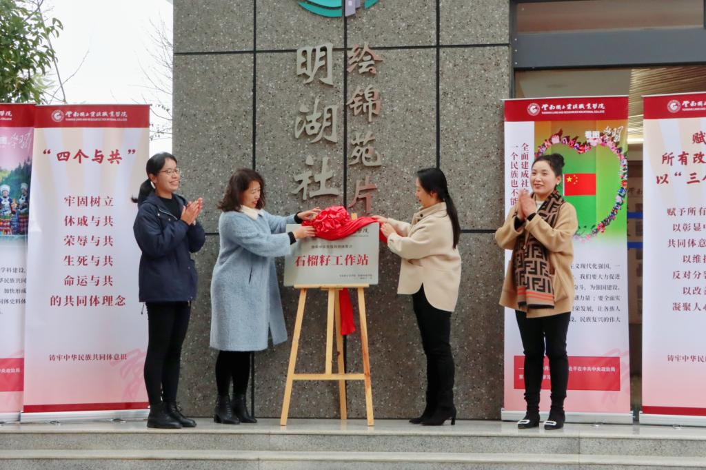 刘燕、张延星、乔文红、关利钦共同为“石榴籽”工作站揭牌。