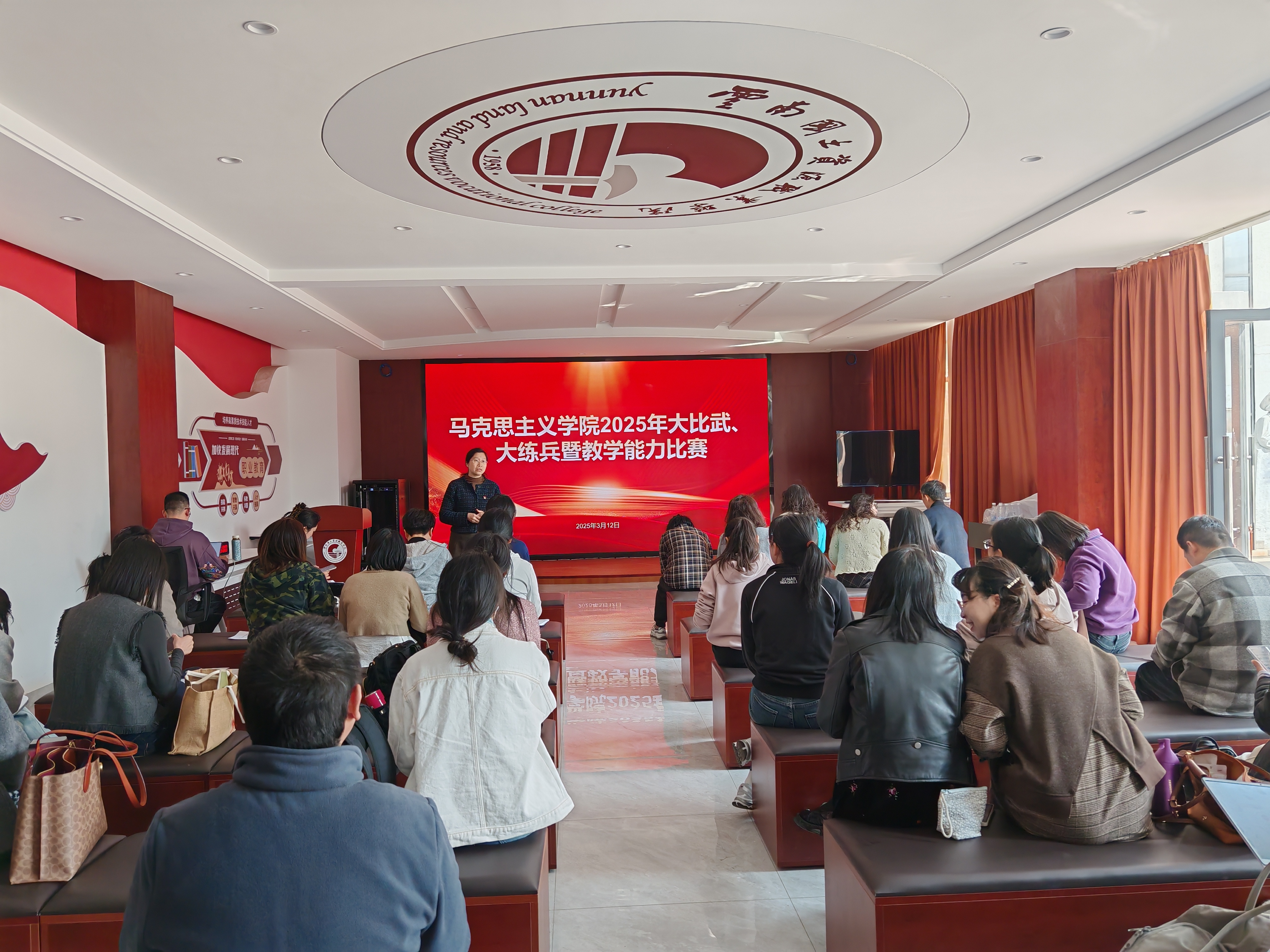3月12日下午,马克思主义学院在尚能馆举办云南省思政课教师教学比赛选拔赛暨“大练兵大比武”活动。比赛由副院长唐兰兰主持,学院全体教师观摩了比赛。