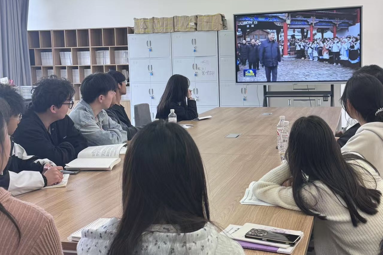 活动伊始,全体成员集中观看了习近平总书记考察云南的新闻报道,深入了解习近平总书记对云南发展提出的新要求,对云南在乡村振兴、民族团结、生态文明方面做出的重要指示精神。随后,5位同学结合专业实践从“筑牢西南生态安全屏障”“自觉担当新时代文化使命”“加快发展高原特色农业”“让人民的生活幸福安康、和和美美”“不断推进中华民族共同体建设”等方面进行了主题发言。